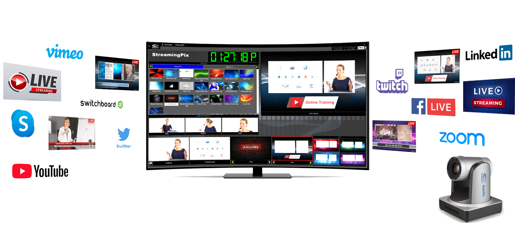 Developed on over 16 years of patented automation and control technologies and innovative tools, StreamingPix simplifies live streaming with an easy to use control interface and a library of clips and graphics giving content a polished and professional look.